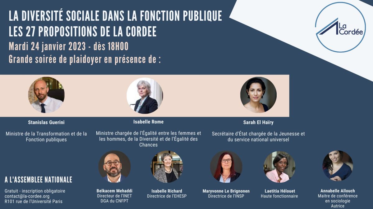 - Table- ronde autour de la diversité sociale dans l’accès à la fonction publique : avec Belkacem Mehaddi, Isabelle Richard, Maryvonne Le Brignonen, Laetitia Hélout, Annabelle Allouch