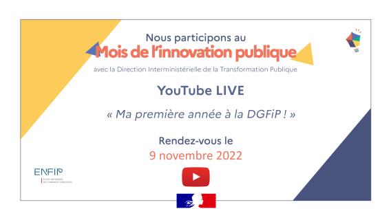 YouTube Live animé par l’ENFIP : des agents, contrôleurs et inspecteurs, recrutés récemment, témoigneront de leur première année à la DGFiP !