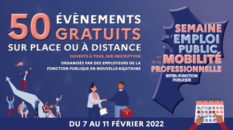 Du 7 au 11 février 2022, la Plate-forme RH du SGAR de la Préfecture de région Nouvelle-Aquitaine organise, en partenariat avec des employeurs des trois versants de la fonction publique, une semaine de l’emploi public et de la mobilité professionnelle.